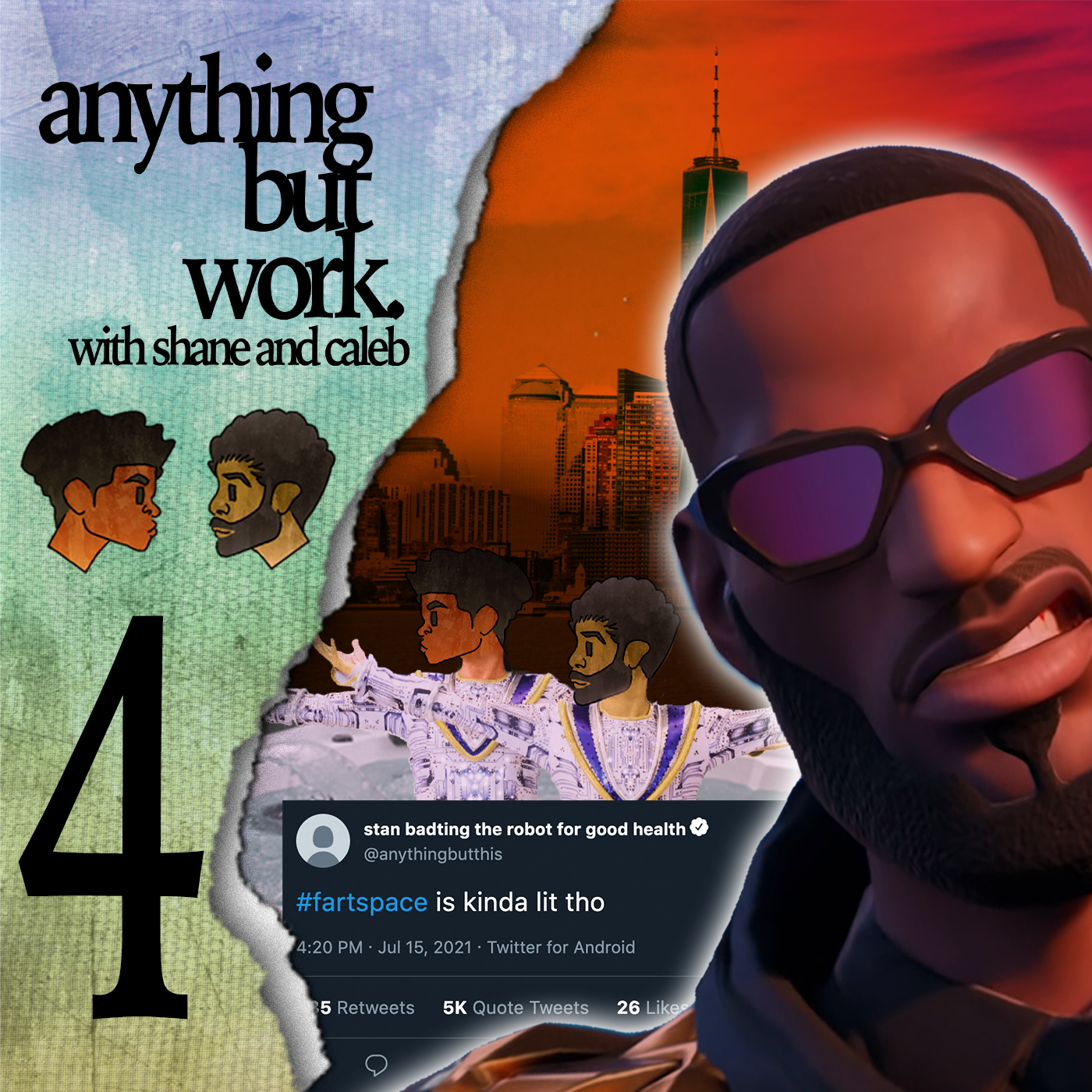 anything but work:Two men and a robot have one rule: never talk about your job.A podcast co-hosted and produced by Shane.